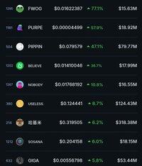 🚨 $FWOG (@itsafwog) je na #1 v nárůstu 24H mezi 40 nejlepšími Solana memecoiny.