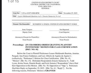 Zatčení — často na soudech nebo při kontrolách ICE — vedla k vlně soudních sporů. Ale to se může měnit: minulý týden soudce v Kalifornii schválil národní hromadnou žalobu a soudci v Massachusetts a Coloradu mají certifikované kurzy po celém státě.