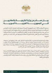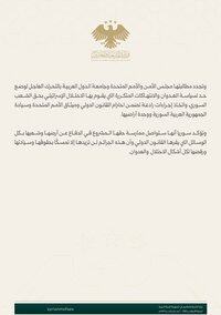 Syrské ministerstvo zahraničí: Odsuzujeme kriminální izraelskou agresi ve městě Beit Jinn, která vedla ke střetům v důsledku odporu obyvatel. Okupační síly spáchaly hrůzný masakr, při kterém zahynulo více než 10 civilistů, včetně žen a dětí.