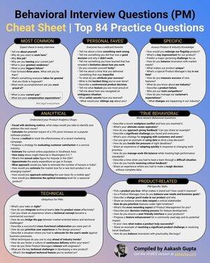 Existuje 7 hlavních kategorií behaviorálních otázek pro PM.