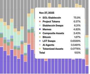SolanaFloor: Objem obchodování s memecoiny je momentálně méně než 5 % denního objemu DEX Solany, což je nejméně od zrychlení aktivity memcoinů před dvěma lety.