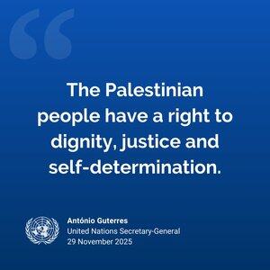 V sobotu, na Mezinárodní den solidarity s palestinským lidem, @antonioguterres opakuje svou výzvu k ukončení okupace palestinského území a k nevratnému pokroku směrem k řešení dvou států.