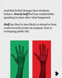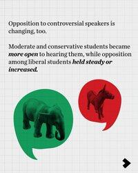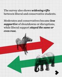 3/ Výsledky také ukazují prohlubující se rozkoly mezi liberálními a konzervativními studenty ohledně cenzurních taktik a tolerance vůči kontroverzním řečníkům.