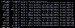 Na MMAPEAKu máme na kartách 3,1 PFLOPS. Tady je absence nerfování 5090 opravdu výrazná, je to více než dvojnásobek surových FLOPS oproti tinybox green v2!