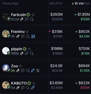 Nejlepší mince Pumpfun za poslední hodinu podle objemu: