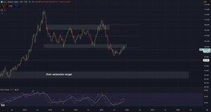 Navzdory nedávným narativům o tom, že čínské státní banky nakupují dolary, $DXY zde stále vypadá těžce poté, co narazila na 100, přičemž předchozí minima v rozpětí nyní působí jako odpor
