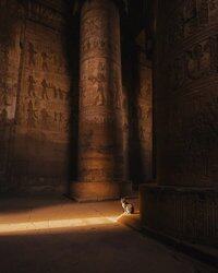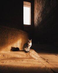Cece, kočka, která žije v chrámu Dendera v Egyptě