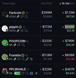 Nejlepší mince Pumpfun za poslední hodinu podle objemu: $Fartcoin $Pippin $Poopcoin $Franklin $Pplwhale 🤖:
