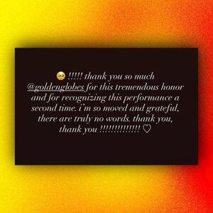 "Moc vám děkuji@goldenglobes za tuto obrovskou poctu a za to, že jste toto představení ocenili podruhé. Jsem tak dojatý a vděčný, opravdu nemám slova. Děkuji"