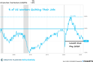 Procento amerických pracovníků, kteří opouštějí zaměstnání, kleslo na 1,8 %, což je nejméně od května 2020. Trh práce nadále slábne...