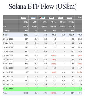 Co se děje s vaším SOL ETF @21shares $TSOL Nasazení: 111 milionů dolarů Čisté toky: (101 milionů USD)