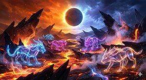Proměňte scénu v surrealistický svět neonových a skleněných tvorů, kde postavy a zvířata mohou zářit ve světle i stínu. ✨🐾💡🌌