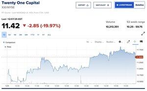 Zajímavé je vidět titulky typu Bloomberg: 'Twenty One klesla o 20 % po fúzi Cantor Equity'.