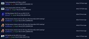 Aktivity s velrybami na polymarketu od našich KOL za posledních 12 hodin.