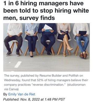 - 1 z 6 bylo řečeno, aby upřednostnili najímání bílých mužů