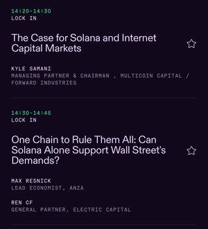 2. Tento slate na uzamčeném pódiu je velmi příjemný @KyleSamani do debaty mezi mnou a @0xren_cf. Pro méně technické lidi je @marcryptonio zároveň na hlavním pódiu, prý si včera večer procvičoval svůj projev před zrcadlem místo toho, aby šel pít s kluky.