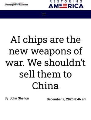 Prodej AI čipů do Číny by: ⚪️Upřednostň zisk před národní bezpečností ⚪️Podpořit vývoj čínských dronů a autonomních zbraní ⚪️Snížit naši dominanci v sektoru AI