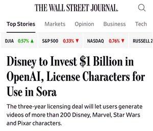 Právě in: Disney investuje do OpenAI 1 miliardu dolarů.
