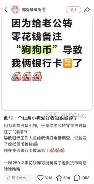 0xa5cd38ebde3cbb7ad5640723662ce2269fc54444 $Dogecoin 210 tisíc OKX: GMGN: Uživatelé Xiaohongshu byli omylem považováni za transakce ve virtuální měně systémem řízení rizik CCB kvůli poznámkám o převodu "Dogecoin", což vedlo k zmrazení účtu; Obě strany byly interviewovány pro China News Weekly a potvrdily, že incident vycházel z lásky k emotikonům s kreslenými psy. Strany předložily manželovy bankovní výpisy a ručně psané závazky k žádosti o odblokování, ale banka zpočátku uvedla, že účet nelze odblokovat a musí účet zrušit; Následné strany odhalily, že karta byla úspěšně odblokována, čímž se vyhnuli problémům se zrušením účtu. Běžní uživatelé zmiňují slovo "mince", které může snadno spustit zmrazenou kartu, a doporučuje se se jejímu používání vyhnout, aby se předešlo nepříjemnostem.