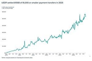 Převody plateb USDT ve výši 156 miliard USD v roce 2025 🤯