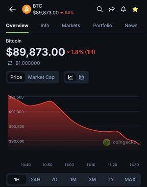 GERADE EINGEGANGEN: $BTC fällt unter $90.000. Diagramm anzeigen: