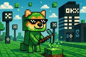 $XDOG verwandelt sich in den Creeper aus "Minecraft", hält eine Pixelspitzhacke und schlägt Schlag für Schlag neues Terrain heraus.🟩⛏️