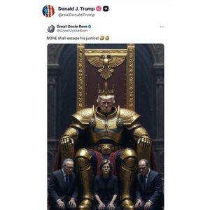 BREAKING: Präsident Trump postet sich selbst als König mit Chuck Schumer und anderen Demokraten auf ihren Knien.