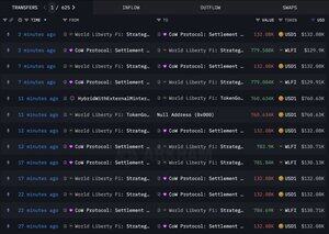Laut Überwachung durch @lookonchain hat @worldlibertyfi in den letzten 5 Stunden WLFI-Token auf der Blockchain zurückgekauft und dabei insgesamt 7,79 Millionen USD1 ausgegeben, um 46,56 Millionen WLFI zu einem Durchschnittspreis von 0,1674 USD pro Stück zu kaufen.