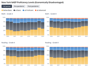 Die öffentlichen Schulen in New York erhalten fast 37.000 $ pro Schüler, dennoch erreichen 52 % der einkommensschwachen Viertklässler im Lesen ein unterdurchschnittliches Ergebnis.