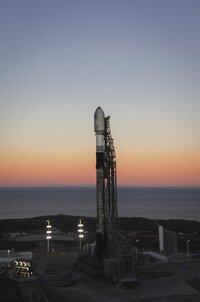 Falcon 9 steht vertikal auf Pad 4E in Kalifornien vor dem heutigen Start der Transporter-15-Rideshare-Mission. Das 57-minütige Startfenster öffnet sich um 10:19 Uhr PT →