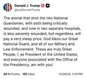 POTUS reagiert auf die Schießerei von zwei Nationalgardisten vor dem Weißen Haus