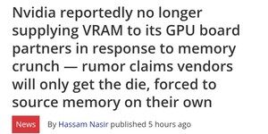 Dies ist ein Leak und noch nicht bestätigt, aber angeblich wird NVIDIA kein VRAM mehr mit den GPUs bündeln, die es an Add-in-Board-Partner verkauft. Diese müssen ihren eigenen RAM beschaffen.