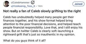 Ich habe 3 Dinge getan: Betrugsaccounts angeprangert, auf wirtschaftliche Politiken hingewiesen, die in Ländern nicht funktionieren (nur Statistiken) und gesagt, dass wiederholte gewalttätige Verbrecher von der Allgemeinheit ferngehalten werden sollten. Wenn du diese "Grift nach rechts" in Betracht ziehst, könntest du ein Extremist sein.