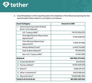 USDT ist nicht "vollständig durch Bargeld gedeckt." Es ist durch US-Staatsanleihen, Erträge und einige risikobehaftete Vermögenswerte gedeckt, skaliert auf einen Stablecoin von 174 Milliarden Dollar.