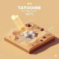 Star Wars Edition Schöner Nano Banana Pro Prompt: PLANET=Tatooine Präsentieren Sie eine klare, 45°-Top-Down-isometrische Miniatur-3D-Cartoon-Szene des Planeten Tatooine aus Star Wars, die seine ikonischsten Wahrzeichen und architektonischen Elemente zeigt. Verwenden Sie weiche, raffinierte Texturen mit realistischen PBR-Materialien und sanfter, lebensechter Beleuchtung und Schatten. Integrieren Sie die aktuellen Wetterbedingungen direkt in die Stadtumgebung, um eine immersive atmosphärische Stimmung zu schaffen. Verwenden Sie eine saubere, minimalistische Komposition mit einem sanften, einfarbigen Hintergrund. Platzieren Sie oben in der Mitte den Titel „Tatooine“ in großen fetten Buchstaben, ein auffälliges Wetter-Icon darunter, dann das Datum (kleiner Text) und die Temperatur (mittlerer Text). Alle Texte müssen zentriert mit konsistentem Abstand sein und können subtil die Oberseiten der Gebäude überlappen. Quadratische 1080x1080 Dimension.