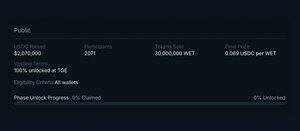 Der aktuelle WET-Preis im Vorverkauf liegt bei 0,15 $, was fast das 3-fache -2-fache für Vorverkaufs-Käufer ist, plus es gibt keine Sperrfrist.