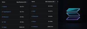 Solana ist immer noch die Nummer 1 im gesamten Krypto-Bereich und führt bei DEX-Volumen und App-Einnahmen.