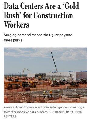 Ganz im Gegenteil, KI ist derzeit für bis zu die Hälfte des US-BIP-Wachstums verantwortlich, einschließlich eines Infrastrukturbooms, der die Gehälter vieler Bauarbeiter um 25-30% erhöht hat.