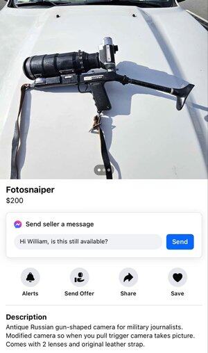 "antike russische pistolenförmige Kamera für Militärjournalisten" klingt ehrlich gesagt wie etwas aus einem @fleshsimulator Video