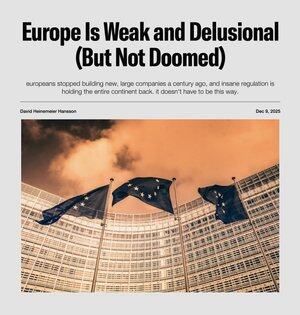 @dhh erklärt, warum Europas Wandel zu anti-liberalen Redepolitiken und der breitere Verfall der Industrie des Kontinents miteinander verbunden sind… und warum es nicht so sein muss.