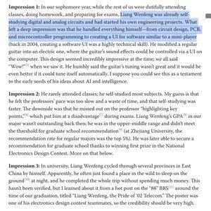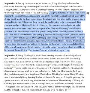 Entdeckt auf LessWrong: die Einsicht eines Klassenkameraden über Wenfeng die Person.