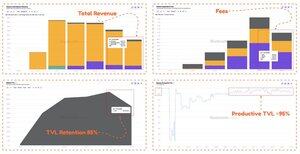Der Vorteil von Katana ist, dass es selbst unter diesen Marktbedingungen ein produktives TVL von ≈95% hält und über 1 Mio. $ an Einnahmen generiert.