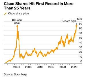 Die Cisco-Aktie hat gerade ihr erstes Rekordhoch seit mehr als 25 Jahren erreicht.