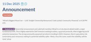Drei bemerkenswerte Ereignisse in den letzten 24 Stunden hinzugefügt ✨ $MNTC (@minatifi) 11. Dez 2025 Ankündigung 👉 $ONDO (@ondofinance) 11. Dez 2025 SSIM und GAM 👉 $FRAX (@fraxfinance), $KRWQ (@krwqcash) 11. Dez 2025 KRWQ auf FraxNet 👉 Weitere Highlights 👉