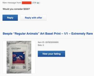 We know what the market thinks of Beeple’s Regular Animals NFTs - a new sale just closed at $36,000.