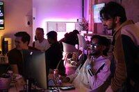 Check-ins erledigt, Teams bilden sich, Laptops raus.