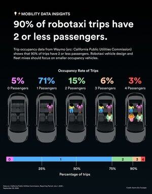 Waymo Q3 2025 besettingsdata viser at 90 % av Waymo Robotaxi-turene har 2 eller færre personer. @elonmusk