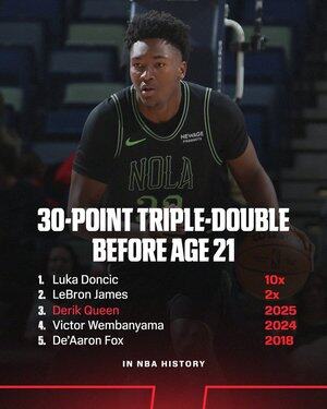 Він став лише п'ятим гравцем в історії НБА, який зробив трипл-дабл з 30 очками до свого 21-річчя!