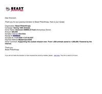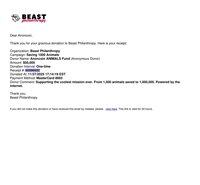 Hemos donado la cantidad total para salvar a los próximos 1,000 animales con MrBeast. Recibos adjuntos.