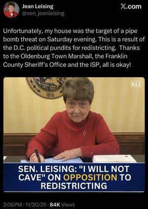Senadora republicana del estado de Indiana. Aprecio que no se haya rendido, pero todos todavía tienen miedo de usar el nombre de Trump. Supongo que hacerlo aumenta exponencialmente las amenazas. Trump gobierna el GOP con miedo e intimidación. Qué partido tan roto.